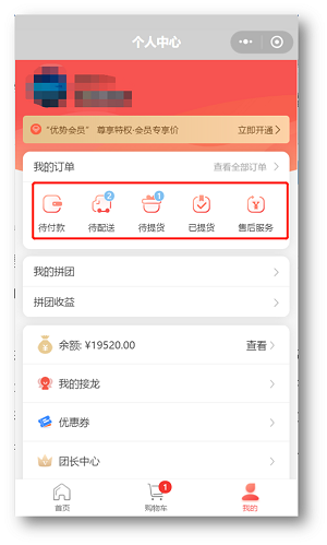 社团团购功能提供会员功能,开通会员可以享受会员价格,进入小程序,在“我的”界面中,选择“立即开通”